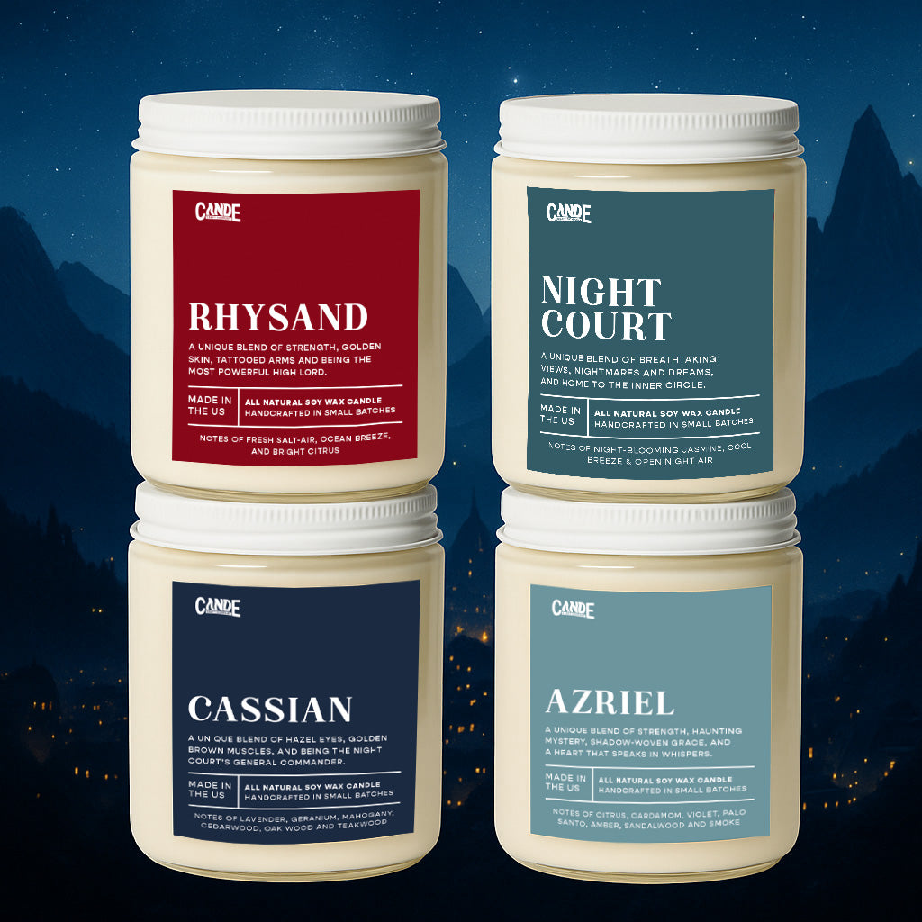 Night Court – Mysterious and alluring, this candle captures the essence of the Court of Dreams with deep notes of night-blooming jasmine, cool breeze & open night air.
