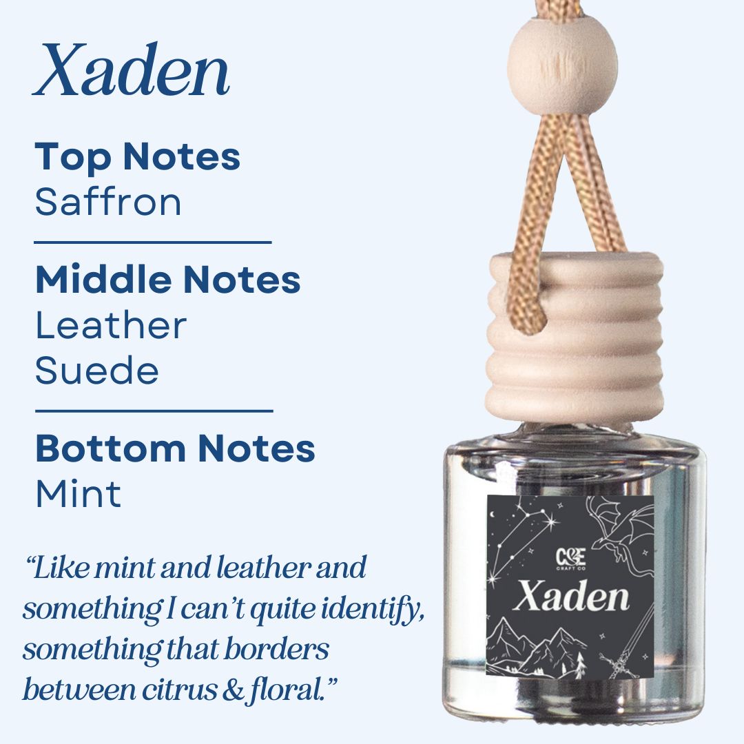 Xaden – Bold saffron, rugged leather, and a sharp hint of mint capture Xaden's dangerous allure and commanding presence.