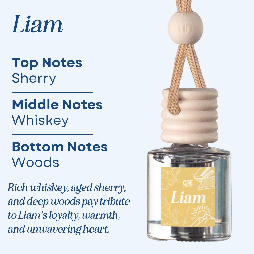 Liam – Rich whiskey, aged sherry, and deep woods pay tribute to Liam’s loyalty, warmth, and unwavering heart.