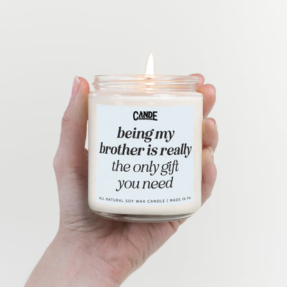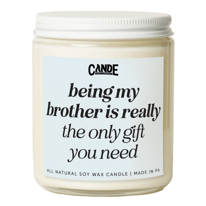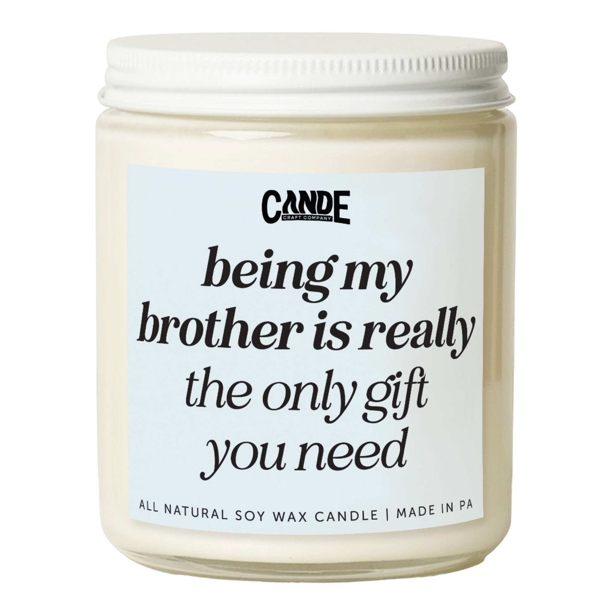 Give the gift of sibling sarcasm with our "Being My Brother Is Really the Only Gift You Need" candle — the perfect funny gift for brothers who think they deserve everything (and maybe they do). This hand-poured soy candle combines humor and high-quality fragrance for a gift that smells as good as it burns. Ideal for birthdays, holidays, or just to remind your brother how lucky he is to have you. Whether he's hard to shop for or just loves a good laugh, this novelty candle makes a memorable and hilarious addition to any room.