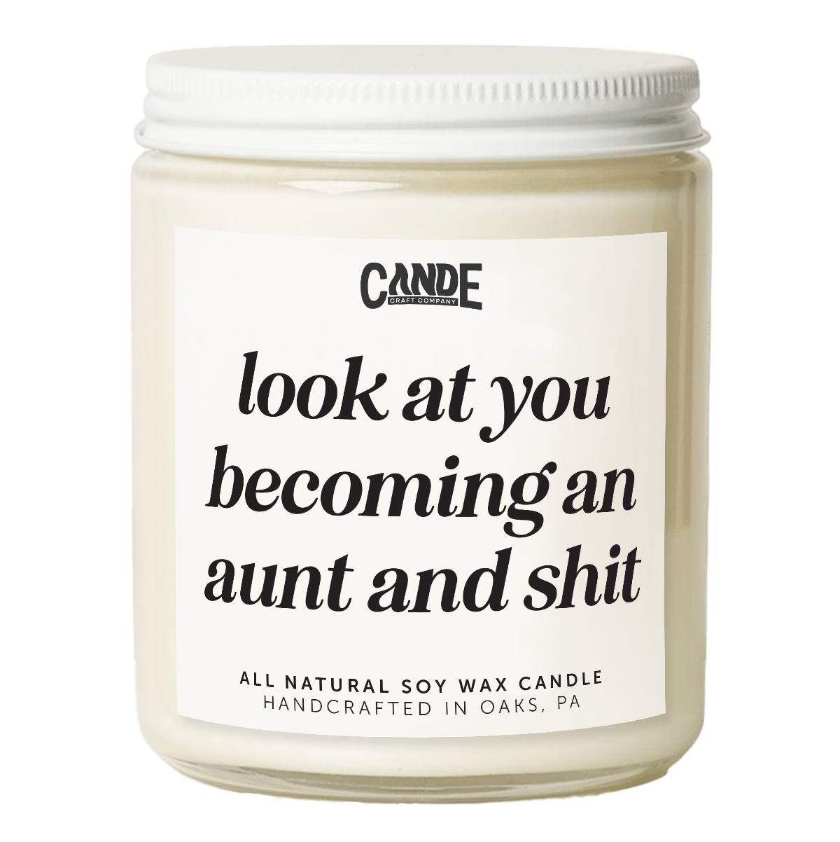 Welcome to the coolest title you’ll ever earn. Our Look at You Becoming an Aunt and Shit candle is the perfect gift for the new auntie who’s ready to spoil, snuggle, and sugar-up that baby before sending them home.