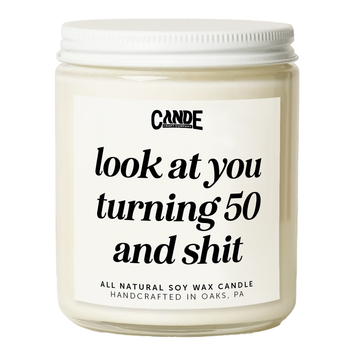 Scented with a rich blend of golden amber, vanilla bean, and subtle “still got it” confidence, this all-natural soy wax candle is the ultimate birthday flex for the fabulous 50.