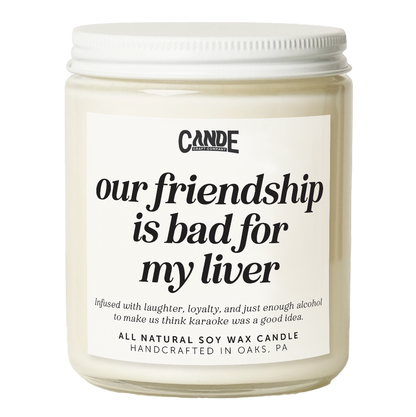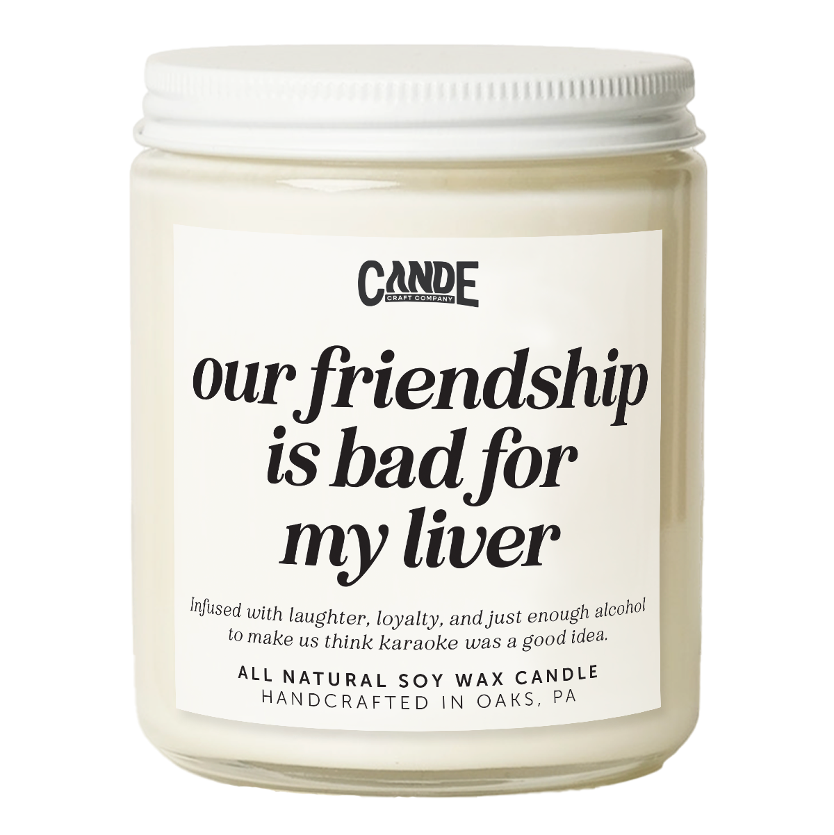 For the partner-in-crime who always says “just one more” (and means five)—our Our Friendship Is Bad for My Liver candle is a boozy tribute to wild nights, questionable decisions, and a bond stronger than your hangover.