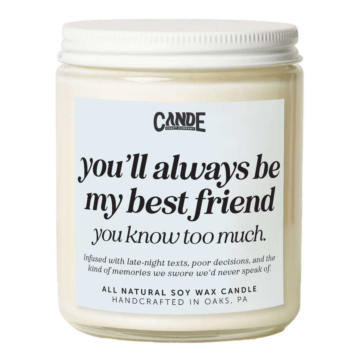 For the one who’s seen it all and still sticks around—our You’ll Always Be My Best Friend (You Know Too Much) candle is a tribute to the unbreakable, slightly incriminating bond that only true friendship can forge.